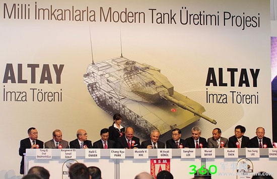 土耳其“阿尔泰”主战坦克大量采用了韩国K2主战坦克的设计技术和设备系统,但主要细节不相同。图为2008年,土耳其和韩国双方合作开发“阿尔泰”主战坦克的启动仪式。